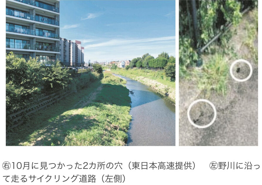 東京外郭環状道路(外環道)の地下トンネル建設工事を巡り、東日本高速道路は、掘削済み区間の地上付近を通る「野川サイクリング道路」に計6つの穴が見つかったとして、道路を管理する東京都狛江市に無断で修復していたことを本紙の取材に明らかにした。東日本高速は掘削が原因で穴ができた可能性は低いとしながら「安全第一で応急処置をした」と釈明。調布市内で発生した陥没事故から18日で3年となるのを前に、地元住民からは「隠蔽いんぺい体質が露呈した」と不信の声が上がる。