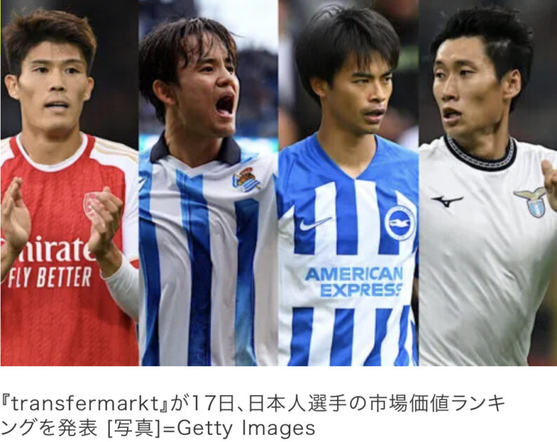 クラブ・選手情報サイト『transfermarkt』が17日、日本人選手の市場価値ランキングを発表した。