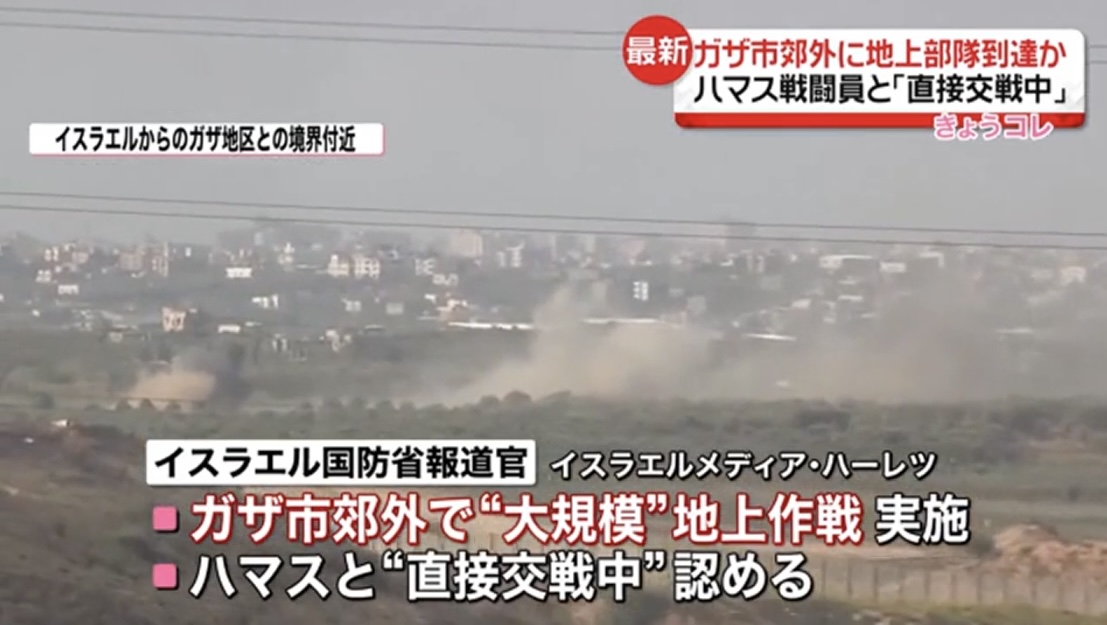イスラエルの有力メディアは先ほど、イスラエルの地上部隊がパレスチナ自治区ガザ地区のガザ市郊外に到達したと伝えました。