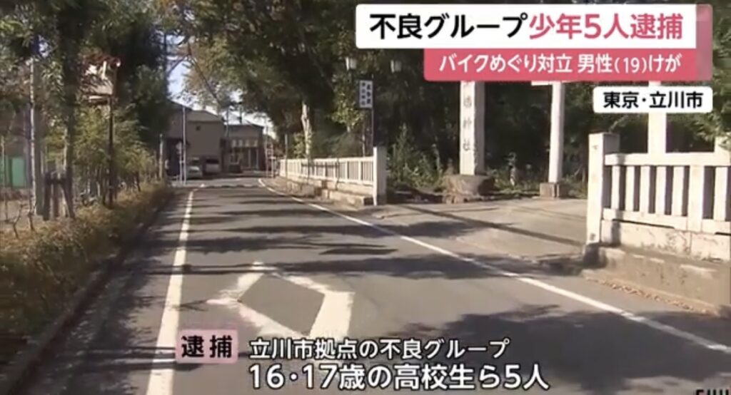 【東京・立川市】全員赤いバンダナ…不良グループの少年5人が対立グループの男性(19)を金属バットで殴った疑いで逮捕 バイク巡り対立