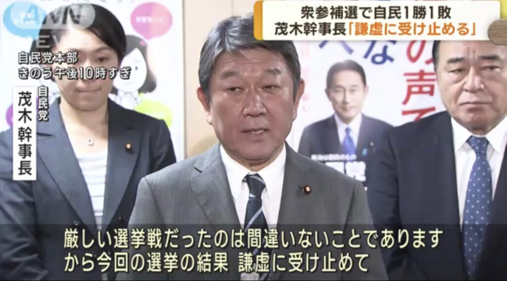 【衆参補選】自民党1勝1敗 茂木幹事長「物価高や様々な国民の思いもあると思う」