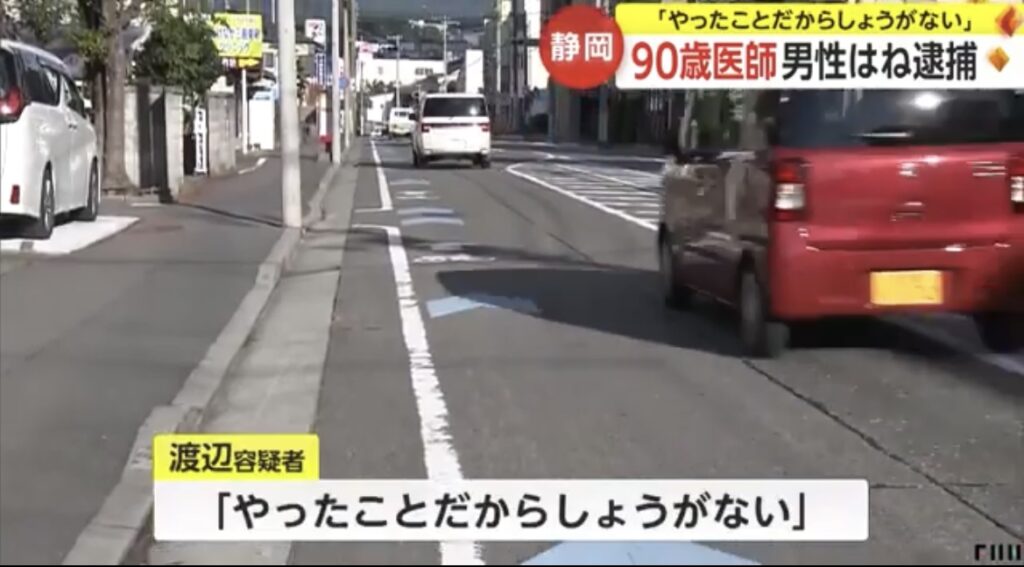 1: テイラー ★ 2023/10/23(月) 08:29:19.86 ID:??? TID:taylor 22日午前6時45分ごろ、静岡・三島市の県道で、路側帯を歩いていた81歳の男性が後ろから走ってきた車にはねられた。 男性は、意識不明の重体。 警察は、車を運転していた90歳の医師・渡辺脩助... -