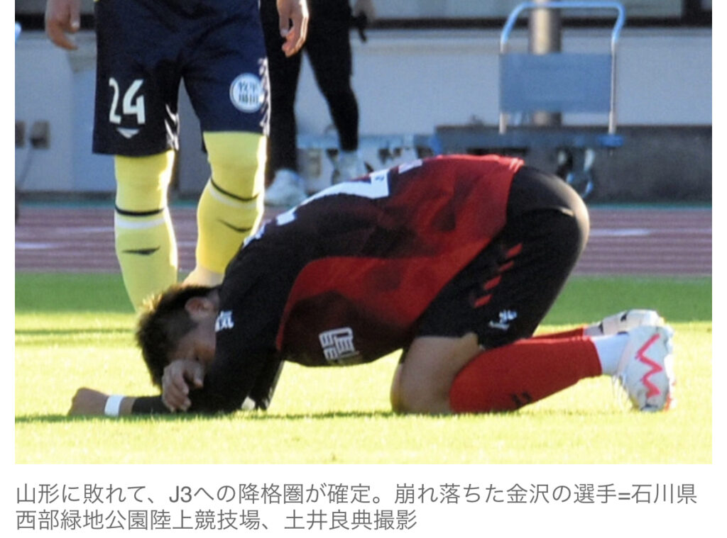 1: 梵天丸 ★ 2023/10/22(日) 20:58:46.19 ID:EdfWVpOl9 10/22(日) 19:00配信 朝日新聞デジタル サッカーJ2で22チーム中最下位のツエーゲン金沢は22日、金沢市の石川県西部緑地公園陸上競技場でモンテディオ山形と対戦し、0―1で敗れた。これで10戦勝ちなし... -