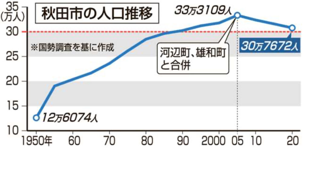 秋田市の人口、年内にも30万人割れか 2005年の合併以来初