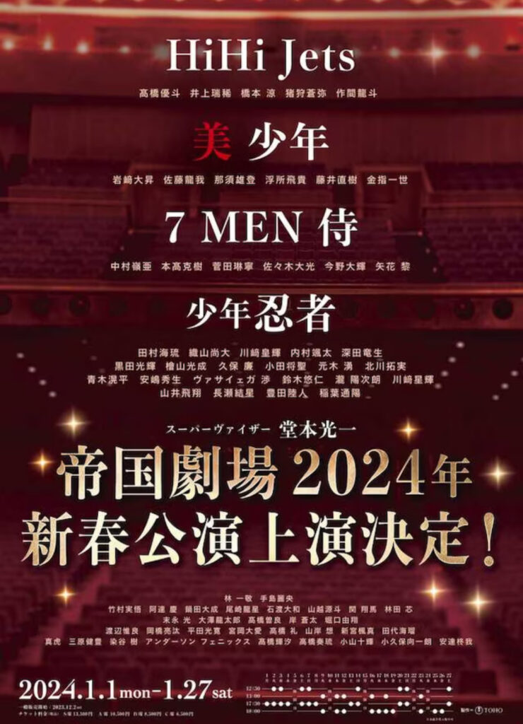 1: Ailuropoda melanoleuca ★ 2023/10/22(日) 04:22:19.11 ID:+DeXNba89 2023/10/22 04:00SMILE―UP.(旧ジャニーズ事務所)の若手グループが多数出演し、東京・丸の内の帝国劇場で上演されてきた新春恒例の舞台「ジャニーズ・ワールド」が消滅する... -
