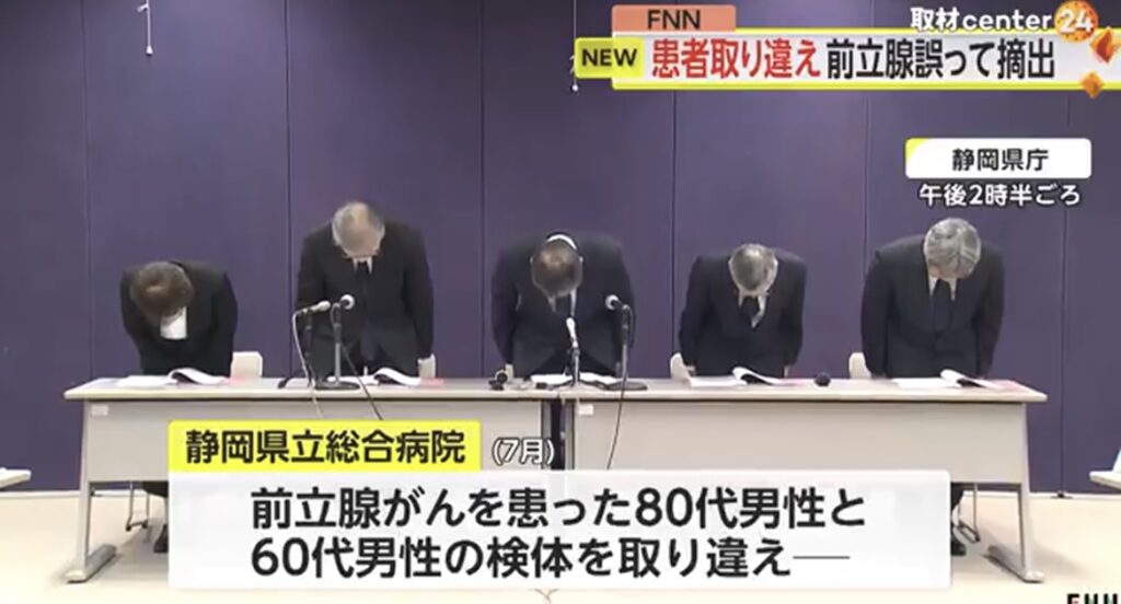 【静岡】癌見つかっていない男性(60代)の男性の前立腺を誤って摘出 県立総合病院“80代の男性と検体を取り違え”