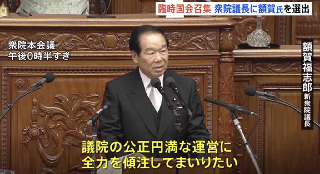 【臨時国会】額賀元財務大臣が衆院議長に就任 健康問題で辞任の細田氏の後任 細田氏は本会議に姿を見せず