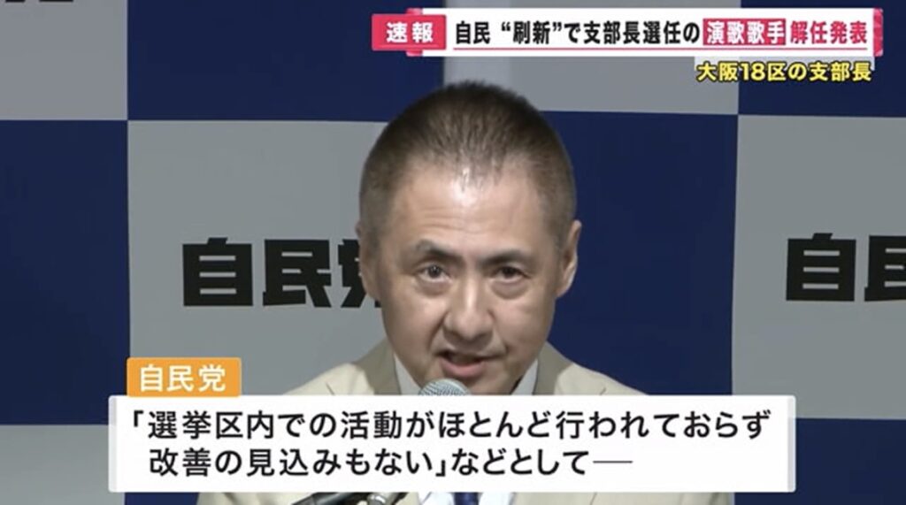 1: KOU ★ 2023/10/20(金) 00:29:52.87 ID:??? TID:kougou 自民党は、大阪18区の支部長に選任していた演歌歌手を解任したと発表しました。 自民党は今年8月、次の衆院選の立候補予定者となる大阪の新しい支部長を発表し、大阪18区では、演歌歌手の尾形大作... -