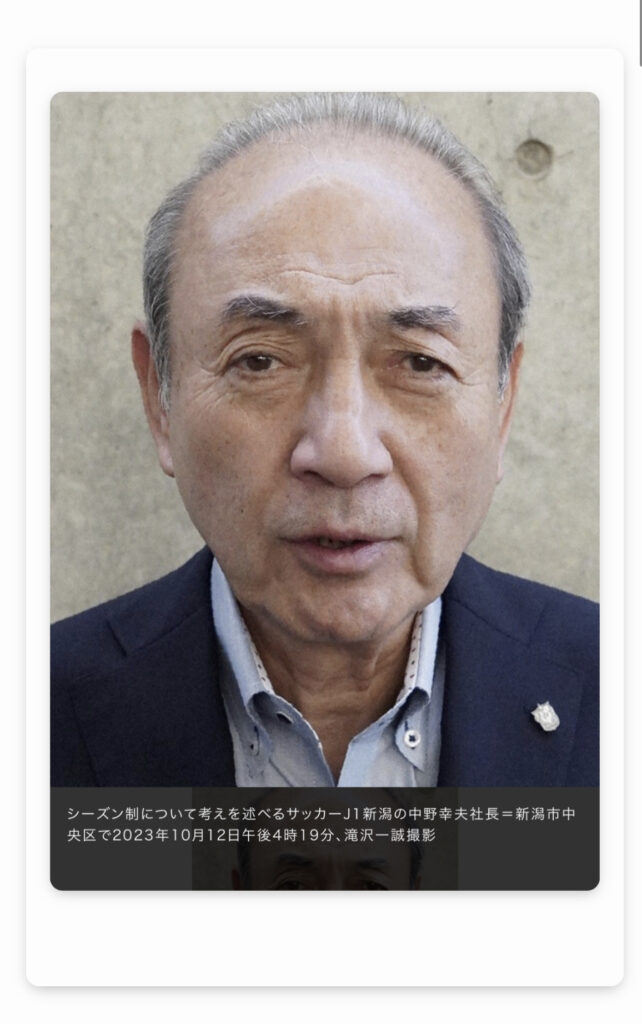 1: ネギうどん ★ 2023/10/19(木) 10:49:07.29 ID:iCsjZlAx9 J1新潟の中野幸夫社長は、一貫してシーズン制の「秋春制」への移行に反対している。毎日新聞の10月12日の取材に「移行するメリットを感じられない。今まで約30年、ここまで発展してきたことに... -