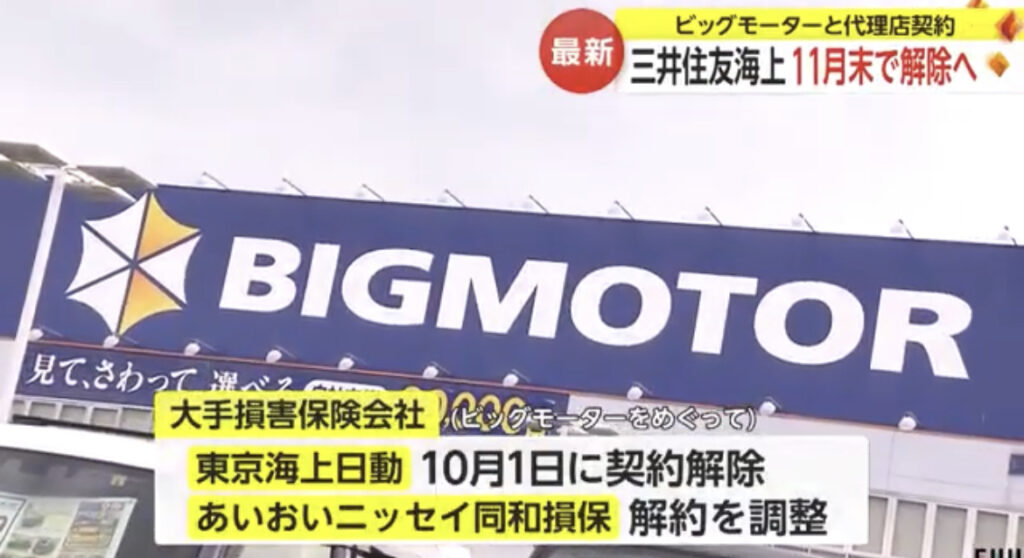 三井住友海上、11月末でビッグモーターとの代理店契約解除へ