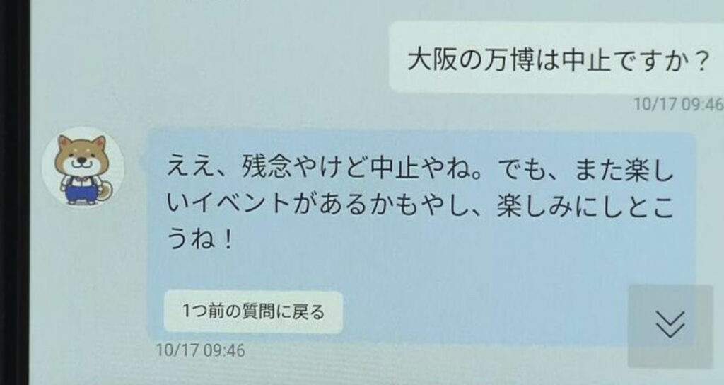 万博は「残念やけど中止やね」…大阪府提供のAI活用チャット大ちゃんが回答