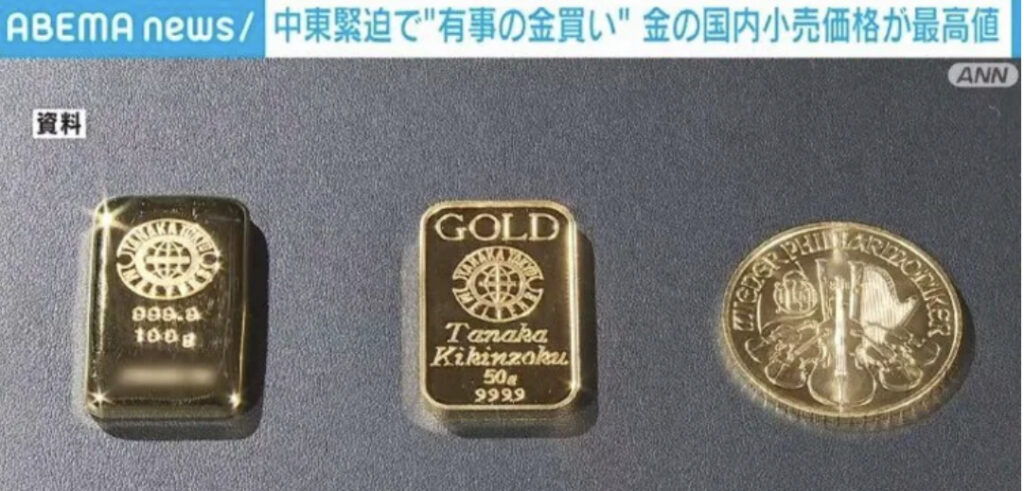 【過去最高】金の国内小売価格が最高値 1gあたり1万233円 中東緊迫が影響か