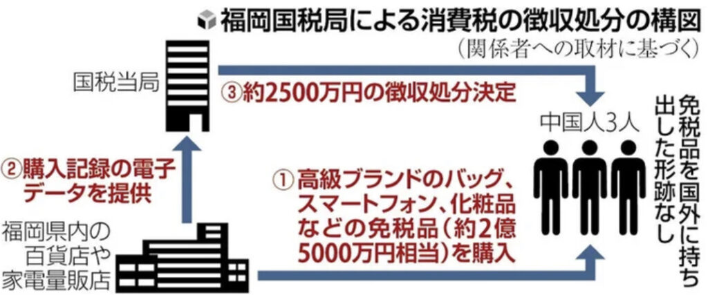 1: ばーど ★ 2023/10/16(月) 08:10:53.14 ID:1Y7+O6S89 免税店で高級ブランド品など約2億5000万円分を購入した中国人男性3人に対し、福岡国税局が昨年6月までの1年間の税務調査で、消費税約2500万円の徴収処分の決定をしたことがわかった。... -