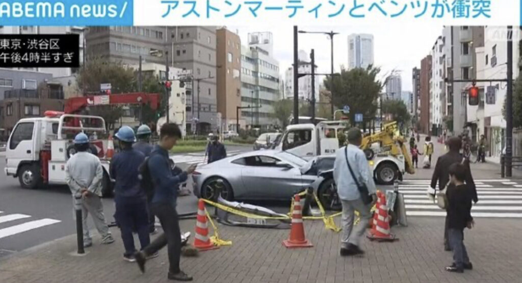 【東京都・渋谷区】アストンマーティンとベンツが衝突 フロント部分が大きくめくれ上がる