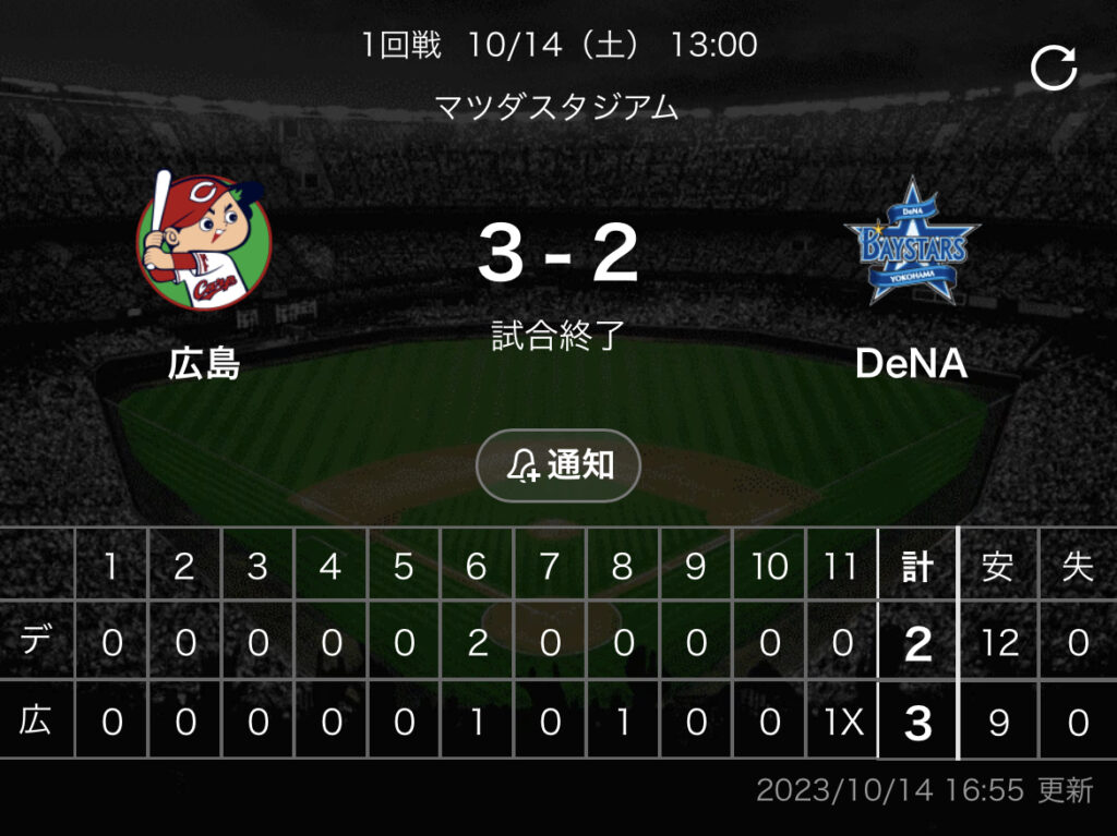 【野球/CS】セ・リーグ C 3x-2 DB [10/14] 広島サヨナラ勝ち!秋山サヨナラ打!DeNAあと後がなくなる