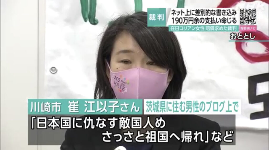 在日コリアン女性を名指しで「祖国へ帰れ」とブログに書いた男に190万円の賠償命令