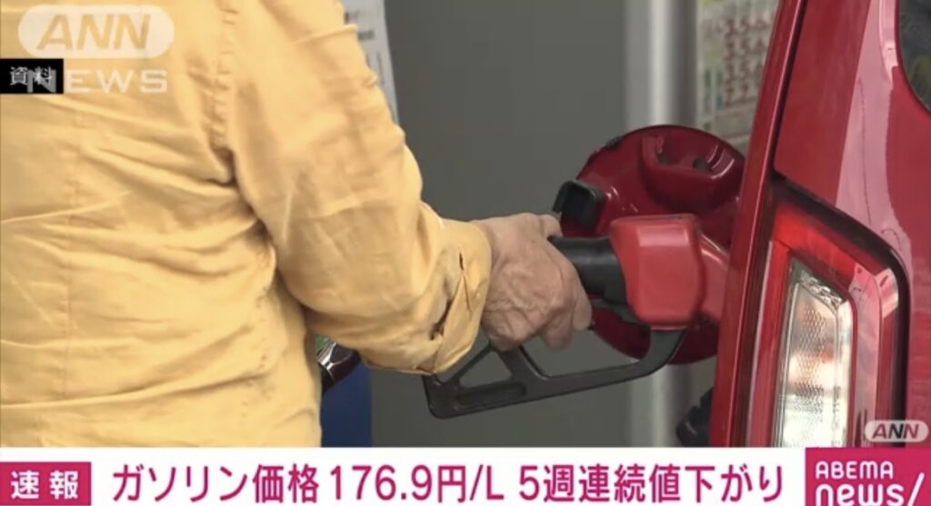 ガソリン価格 176.9円/L 補助金で5週連続値下がり