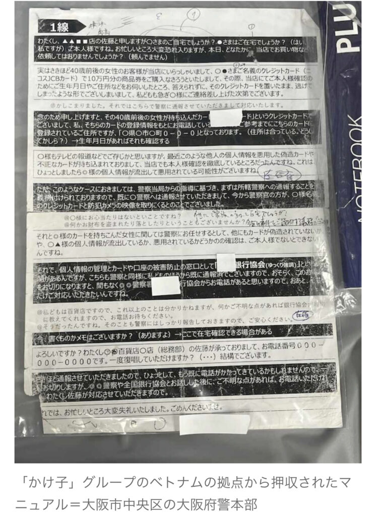 【大阪府警】ベトナム拠点を初摘発、特殊詐欺グループのかけ子6人逮捕…名簿13万人分、マニュアルも押収
