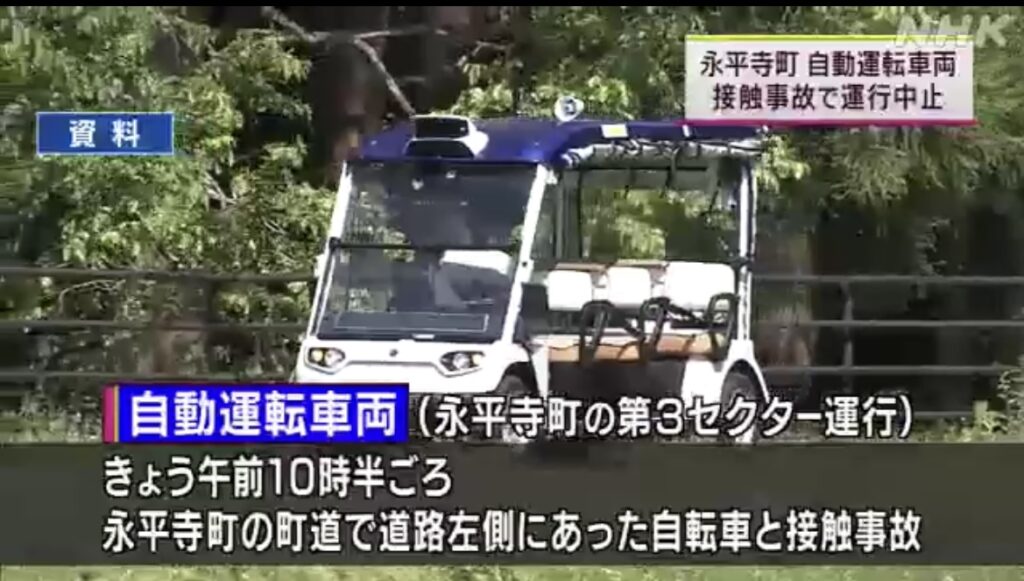 【福井】永平寺町で自動運転レベル4の車両が自転車に接触で運行中止に