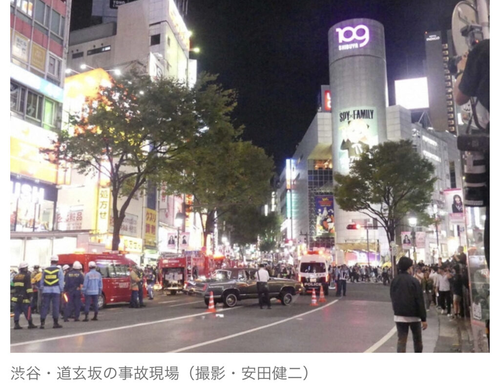 渋谷スクランブル交差点付近に車が突っ込み7人負傷「ドリフトのようなパフォーマンスをしているように見えた」