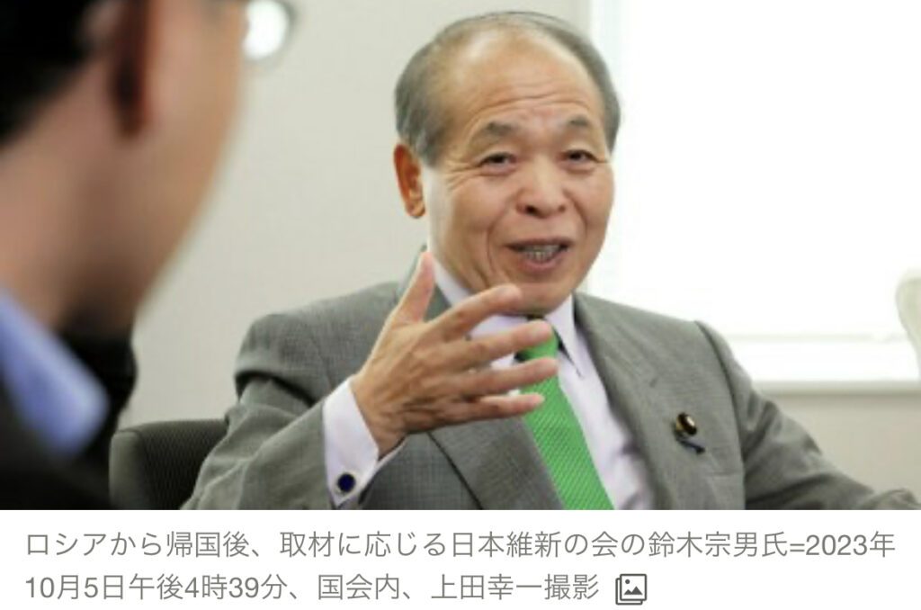 1: 蚤の市 ★ 2023/10/06(金) 12:29:33.67 ID:FZAJN3gE9 今月1~5日の日程でロシアを訪問した日本維新の会の鈴木宗男参院議員が、「ロシアの勝利、ウクライナに対して屈することがない」などと現地で発言していたことがわかった。維新は6日の役員会で、除... -