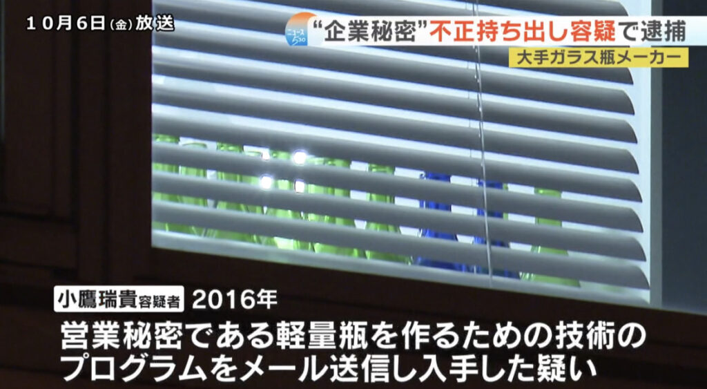 1: ちょる ★ 2023/10/06(金) 12:16:16.42 ID:??? TID:choru 会社の営業秘密を不正に持ち出したとして逮捕です。 不正競争防止法違反の疑いで逮捕されたのは兵庫県尼崎市の大手ガラス瓶メーカー、「日本山村硝子」の元社員・小鷹瑞貴容疑者と、妻の青佳容疑... -