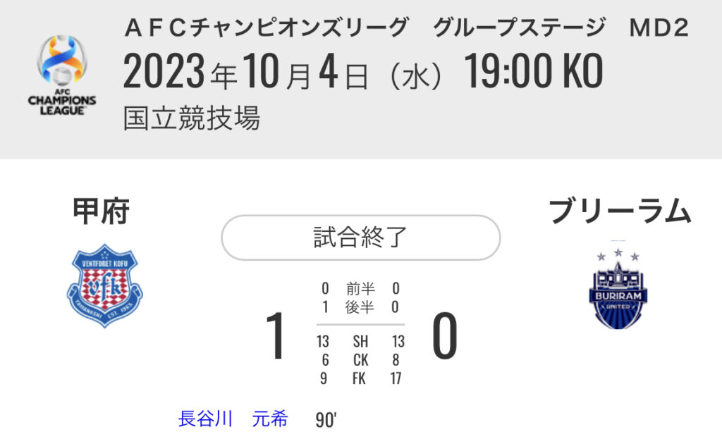 1: 久太郎 ★ 2023/10/04(水) 20:57:32.61 ID:UQnoTaqJ9 甲府 1-0 ブリーラム [得点者] 90'長谷川 元希(甲府) スタジアム:国立競技場 https://www.jleague.jp/match/acl/2023/100404/live/#live 浦和 6-0 ハノイ [得点者] 09'オウンゴール ...