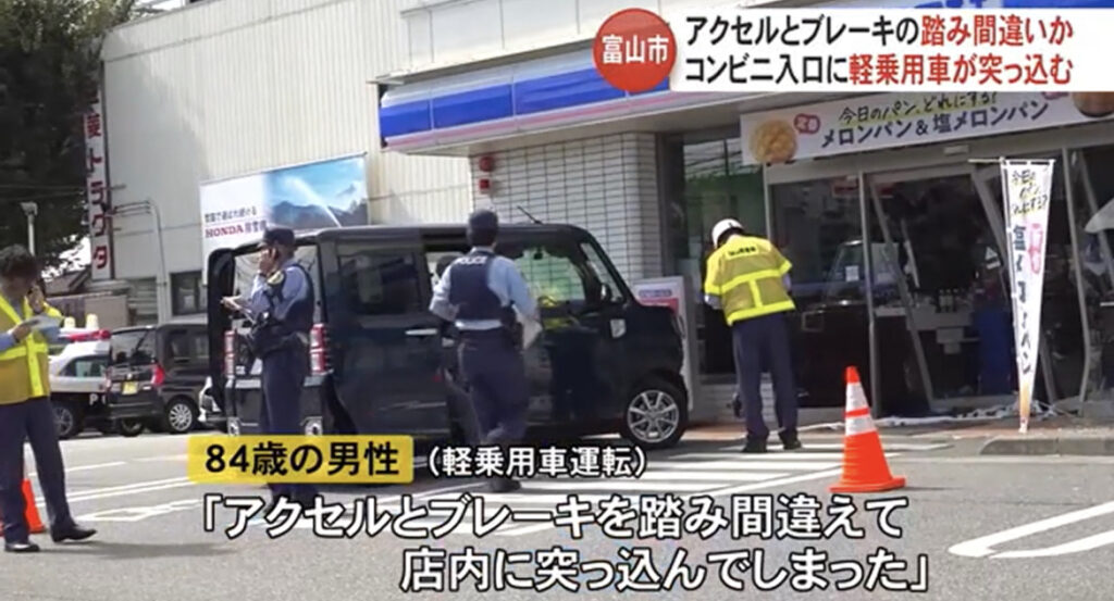 【富山】「アクセルとブレーキを間違えた」 84歳男性が運転の軽乗用車がコンビニに突っ込む 負傷者は無し