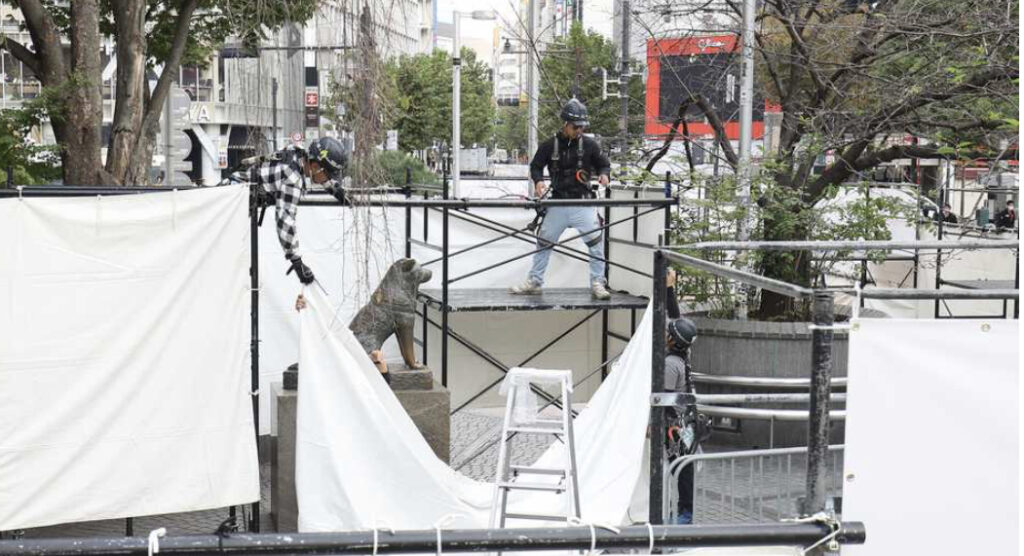 【ハロウィン】渋谷「ハチ公」に目隠し 落胆する外国人旅行者に同情の声「シンガポールでマーライオンが目隠しされたらがっかりする」