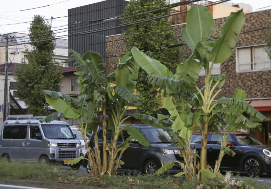 市道分離帯に無許可バナナ 久留米市、伐採求める
