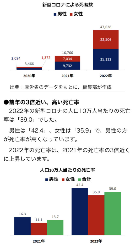 【新型コロナ】2022年の新型コロナの死者は4万7千人。前年の約3倍で「不慮の事故」に並ぶ規模