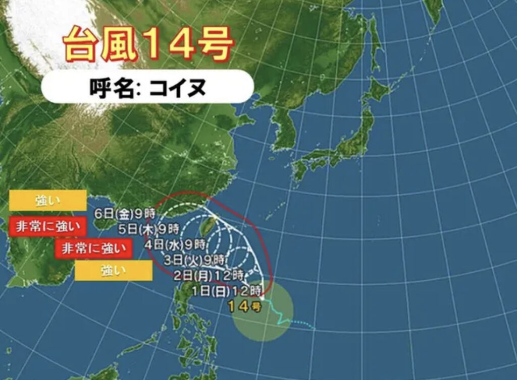 【気象】台風14号「コイヌ」非常に強い勢力へ 週半ば頃 沖縄の先島諸島を中心に荒天の恐れ