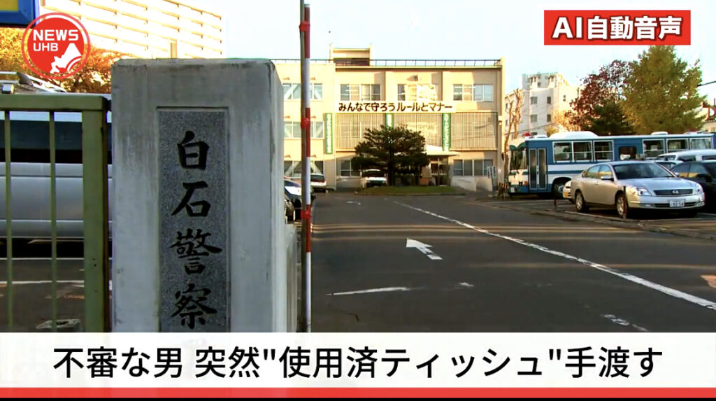 1: アレックス ★ 2023/10/31(火) 19:01:15.70 ID:??? TID:alex 札幌市内のバス乗り場でバスを待っていた女性に、不審な男が近づき”使用済みのティッシュ”を手渡すという不衛生な事案がありました。 警察は男の特徴を公開し、市民に注意を呼びかけています... -