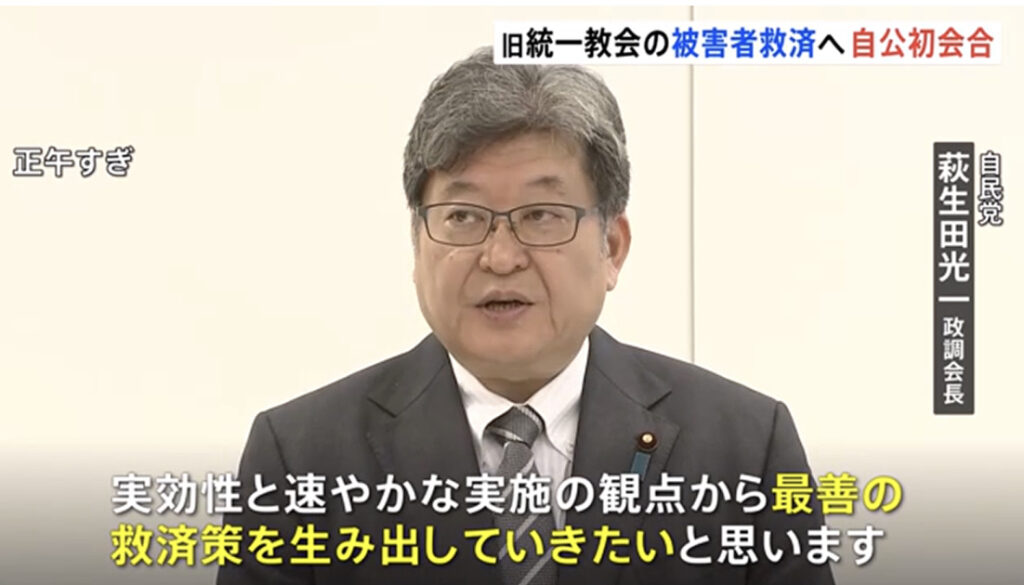 旧統一教会の被害者救済へ 自民・公明が初回会合「実効性と速やかな実施の観点から最善の救済策を生み出す」
