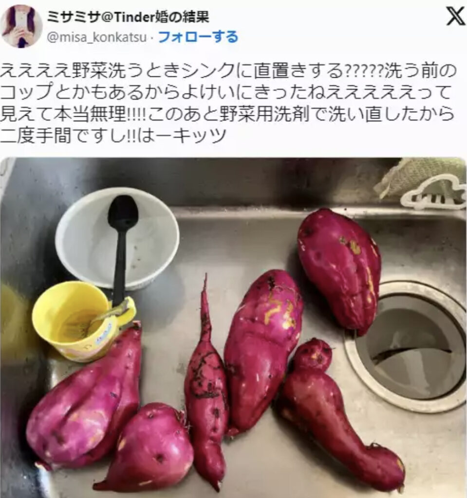 女さん「ギャオオン!夫が芋をシンクに直置きしてるうう!」