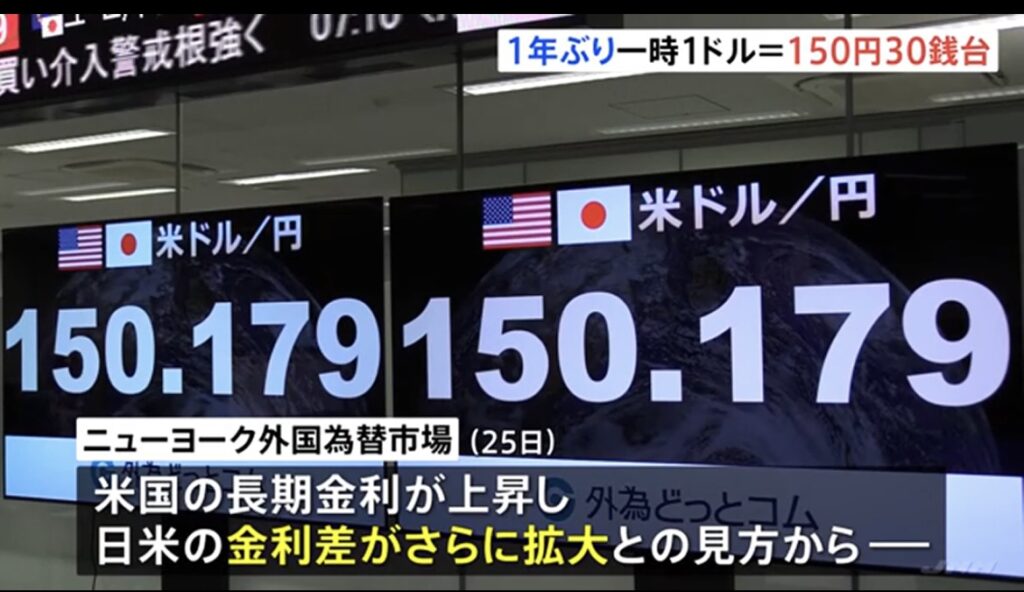 円安加速1年ぶりに一時150円30銭台に 市場では政府・日銀による為替介入への警戒感