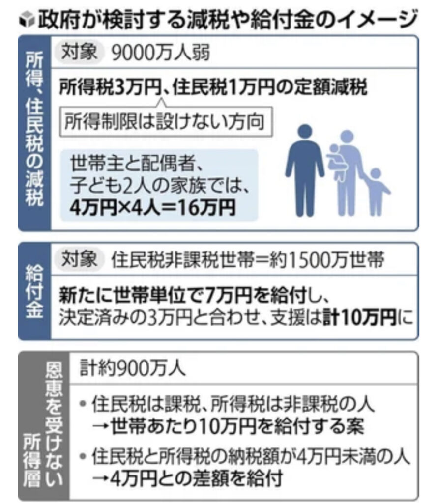 「4万円減税」に所得制限設けず、低所得世帯向け「7万円給付」は年内開始へ