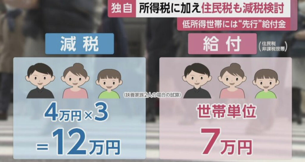 【政府案】2年間の増収分は3.5兆円…所得税3万円、住民税1万円の減税 非課税世帯には先行給付金