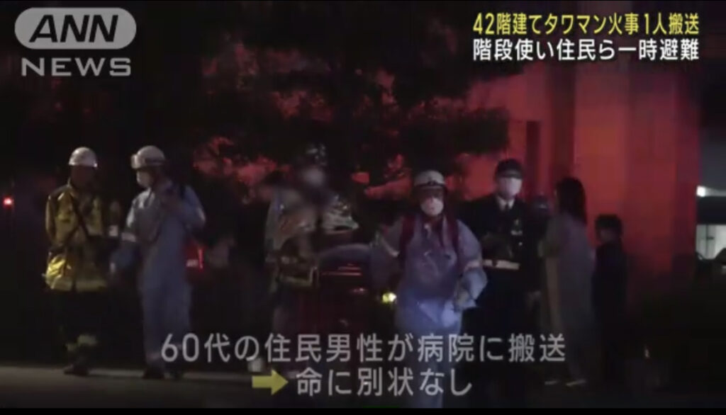 【福岡】42階建てタワーマンションで火事 60代男性搬送 階段使い住民ら一時避難