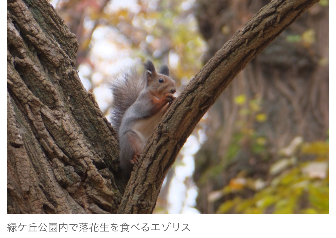 帯広市内の緑ケ丘公園で、利用者によるエゾリスへの餌付け行為が常態化しており、同公園を管理する市みどりと花のセンターは餌を与えないよう注意喚起する看板を増設した。