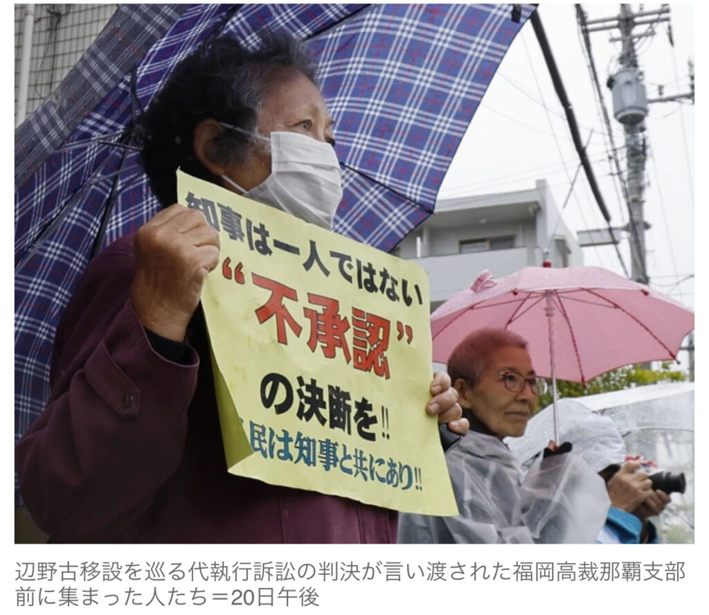 1: nita ★ 2023/12/20(水) 22:37:09.89 ID:9ioQjjhU9 12/20(水) 18:09配信 共同通信 「不当判決だ!」。裁判長が主文を読み上げると、法廷内に男性の怒号が響いた。米軍普天間飛行場の名護市辺野古への移設を巡る代執行訴訟で、沖縄県知事に承認を命じた... -
