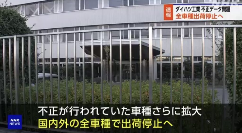 1: ばーど ★ 2023/12/20(水) 20:43:53.41 ID:DmXJmUkY9 自動車メーカーのダイハツ工業は、国の認証取得の不正問題で新たに174件の不正が見つかったと発表しました。会社は、国内外のすべての車種で出荷の停止を決めました。 ■不正データ問題 ダイハツ・ト... -