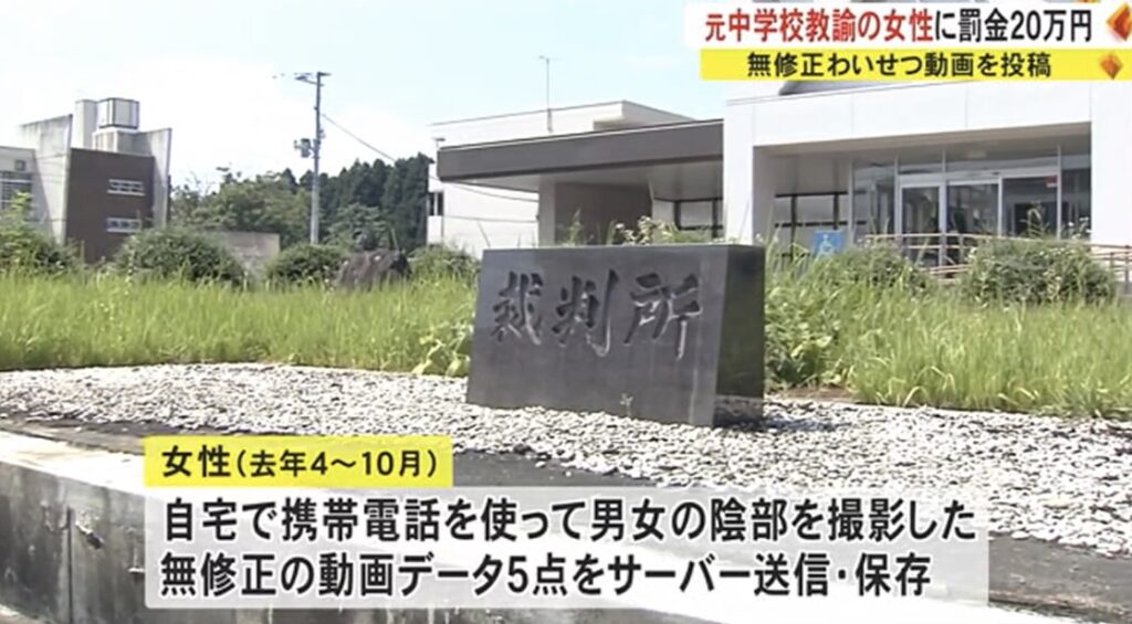 【裁判】女教師、無修正動画をネットに投稿して罰金20万円