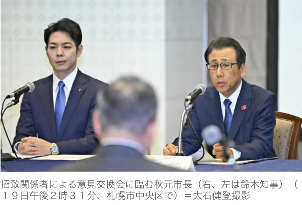1: 梵天丸 ★ 2023/12/19(火) 15:32:13.41 ID:ZiyAIPNl9 12/19(火) 15:04配信 読売新聞オンライン 札幌市の秋元克広市長は19日、市内で開かれた地元経済界や日本オリンピック委員会(JOC)、競技団体などとの意見交換会で、冬季五輪・パラリンピック... -