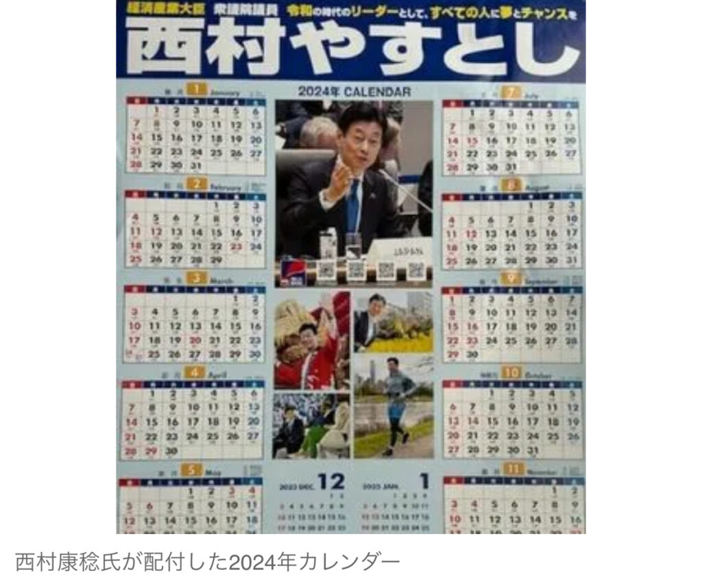 【公選法違反疑惑で安倍派議員もビックリ】「西村康稔」氏が地元有権者に「有料カレンダー」をタダで配っていた ドデカい100円ポスター
