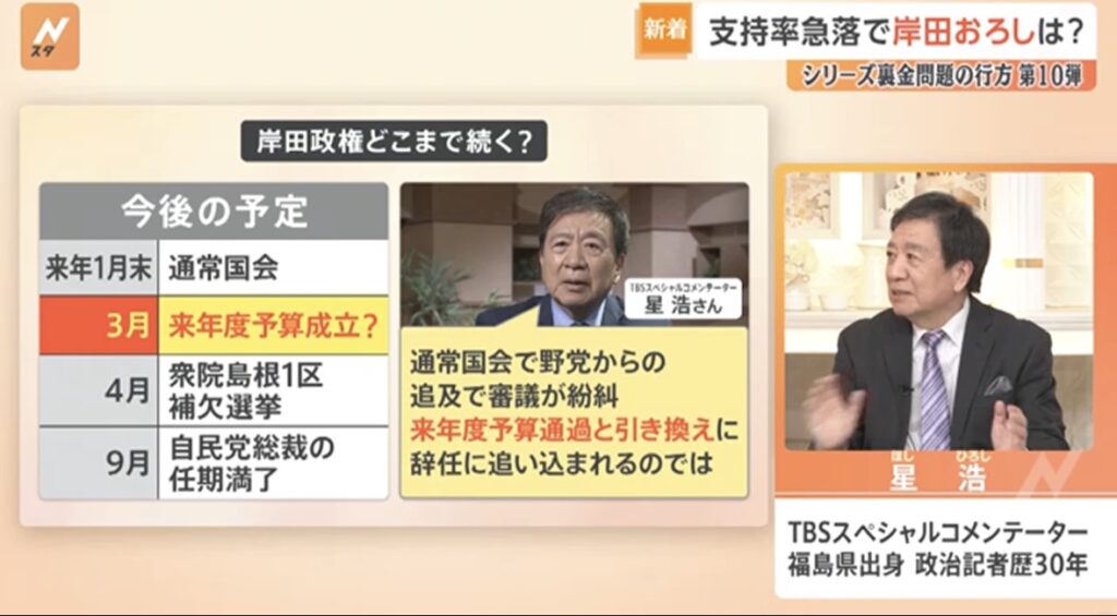 1: ぐれ ★ 2023/12/19(火) 11:40:41.18 ID:FEptdc7z9 >>12/18(月) 21:21配信 TBS NEWS DIG Powered by JNN 岸田内閣の支持率低下で岸田政権が今後どうなるのか?を見ていきます。 ■■岸田内閣 支持率過去最低も“岸田おろし”は起きない? 南波雅俊キャ... -
