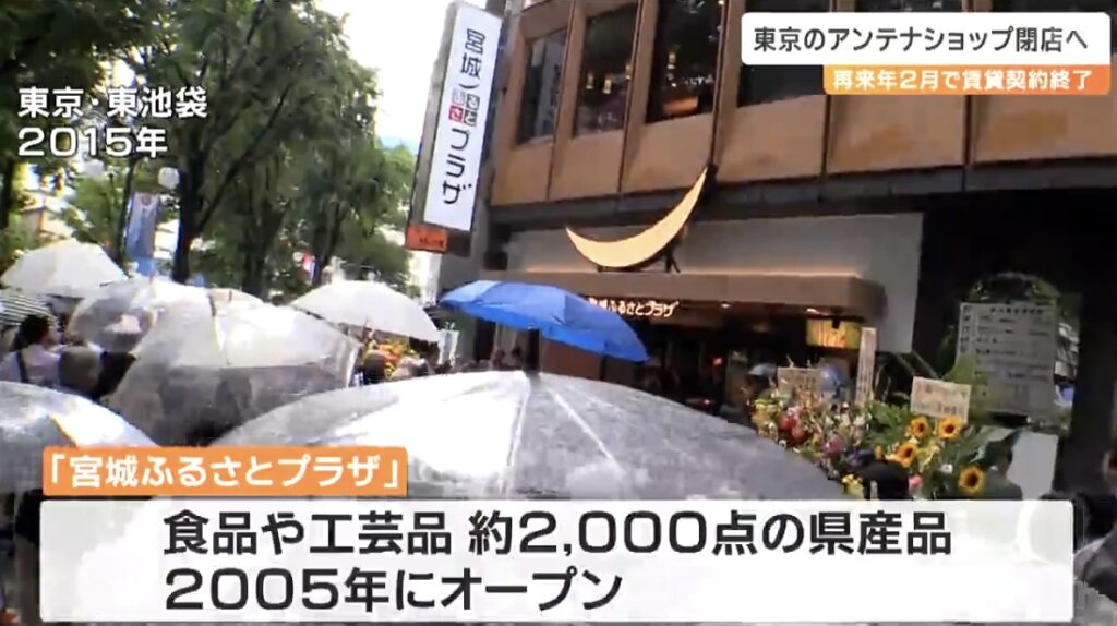 1: Ailuropoda melanoleuca ★ 2023/12/16(土) 22:50:20.45 ID:4cE/qoXL9 12/15(金) 15:21配信宮城の特産品を販売してきた東京都内のアンテナショップについて県は、再来年2025年2月で賃貸契約を終える方針を決めました。これによりアンテナショップは閉店...