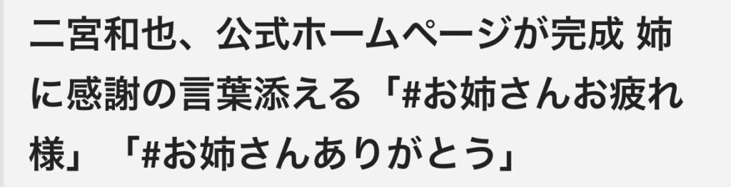 【嵐】二宮和也、公式ホームページが完成 姉に感謝の言葉添える「#お姉さんお疲れ様」「#お姉さんありがとう」