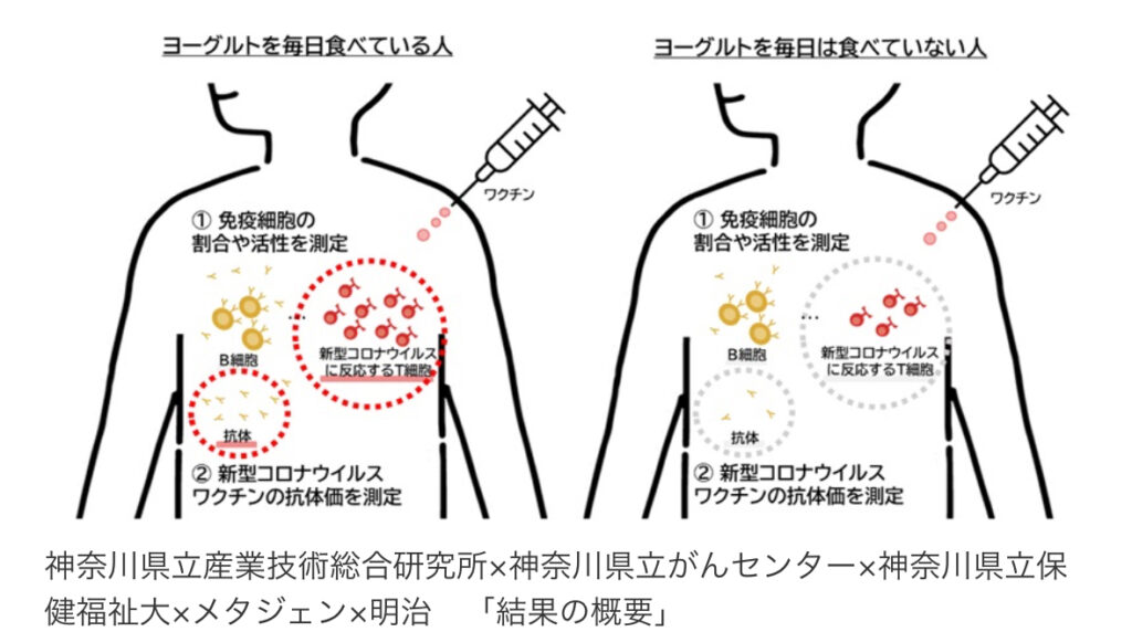 【神奈川県立産業技術総合研究所】ヨーグルトを毎日食べている人は、そうでない人に比べ、コロナワクチンの抗体価が高く、T細胞の割合も多い