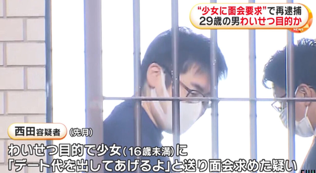 1: ばぐっち ★ 2023/12/15(金) 08:35:56.67 ID:??? TID:BUGTA わいせつ目的で少女に面会を求めた疑いで、29歳の男が再逮捕された。西田悠亮容疑者(29)は11月、埼玉県の少女(16歳未満)に「デート代を出してあげるよ」などとメッセージを送り、わいせつ... -